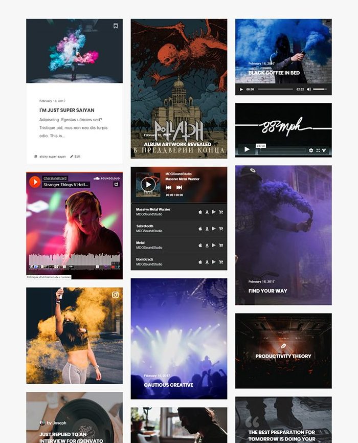 Stream your music with our unique playlist manager or embed your songs from your favorite music platform.